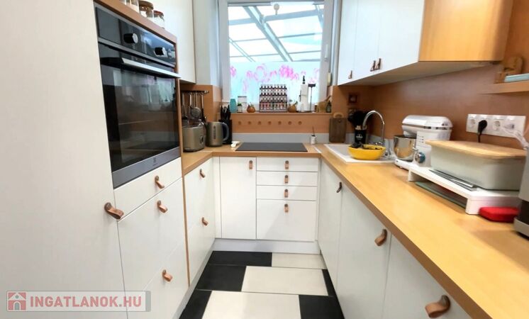 • Tökéletes elosztás: földszinten étkező-konyha-nappali, szoba, fürdő káddal, wc és egy terasz, ami a nappaliból és a szobából is elérhető